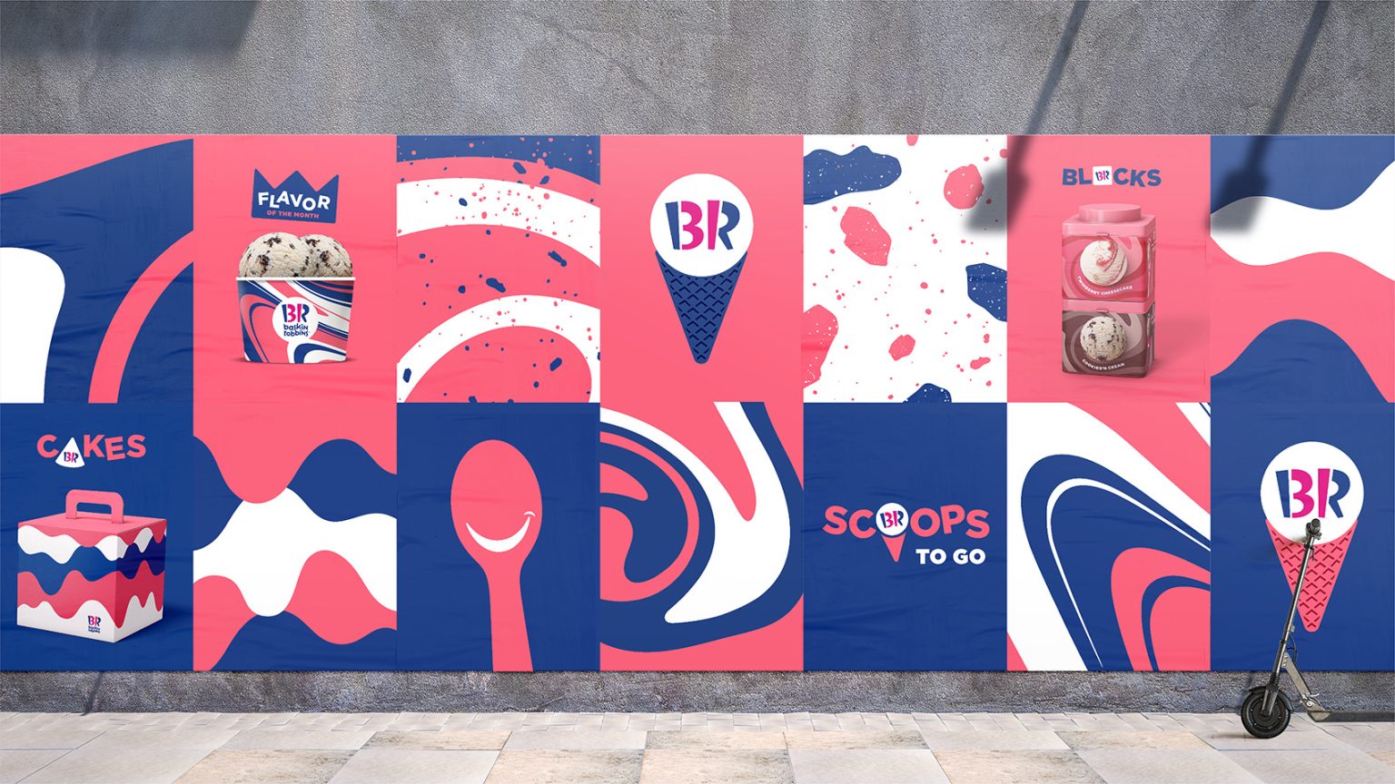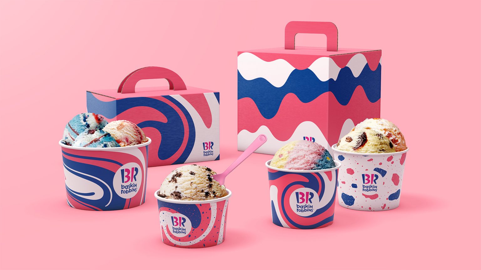 We approached the rebrand less like food, and more like fashion. At its centre sits a refreshed identity – clear, confident, and unmistakably Baskin-Robbins. Around it, we created an endlessly expressive system of patterns inspired by the swirls, chunks, and ripples inside each scoop.