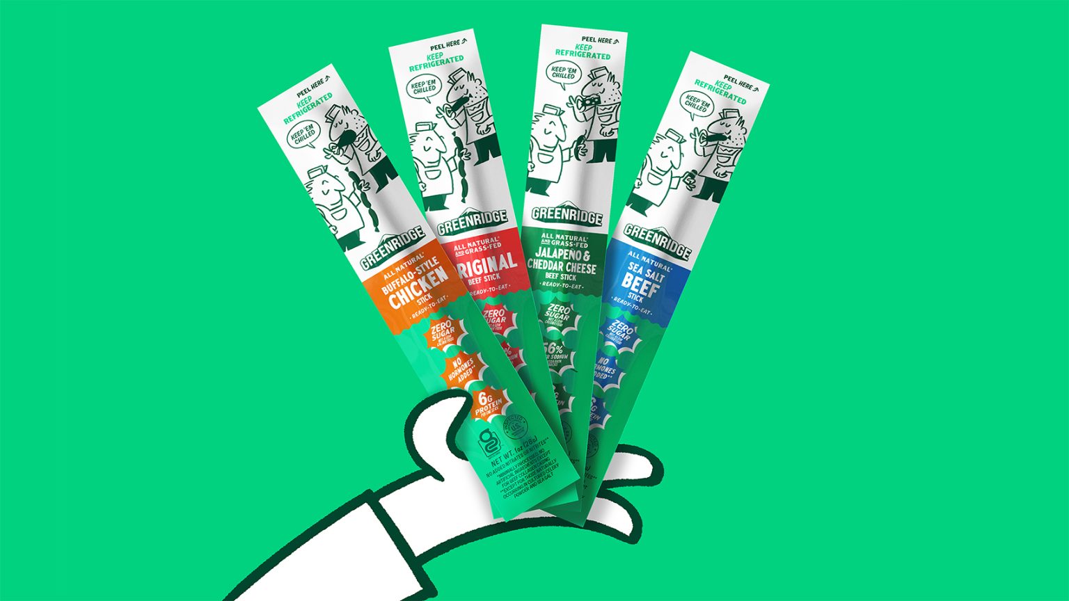 Founded by brothers Michael and Sebastian, Greenridge blends European roots with Chicago pride and an obsession for all-natural, artisanal meats. But while the products were excellent, the brand lacked the distinction and story to match. The challenge: to grow the protein snack range, giving it as much charisma and larger-than-life character as the brothers behind it.